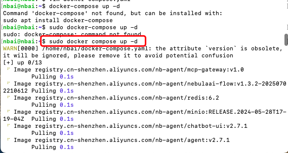 首次拉取镜像受网络状况影响较大,通常需要 10 到 20 分钟,请保持网络通畅直至服务启动完成。