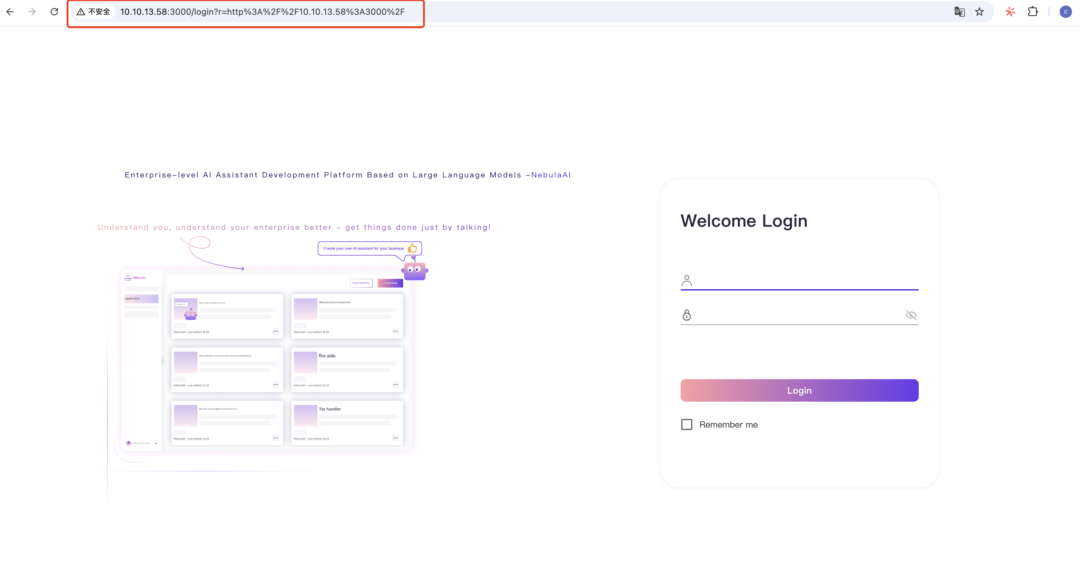 - 访问服务:服务启动后,访问并登录 NebulaAI。