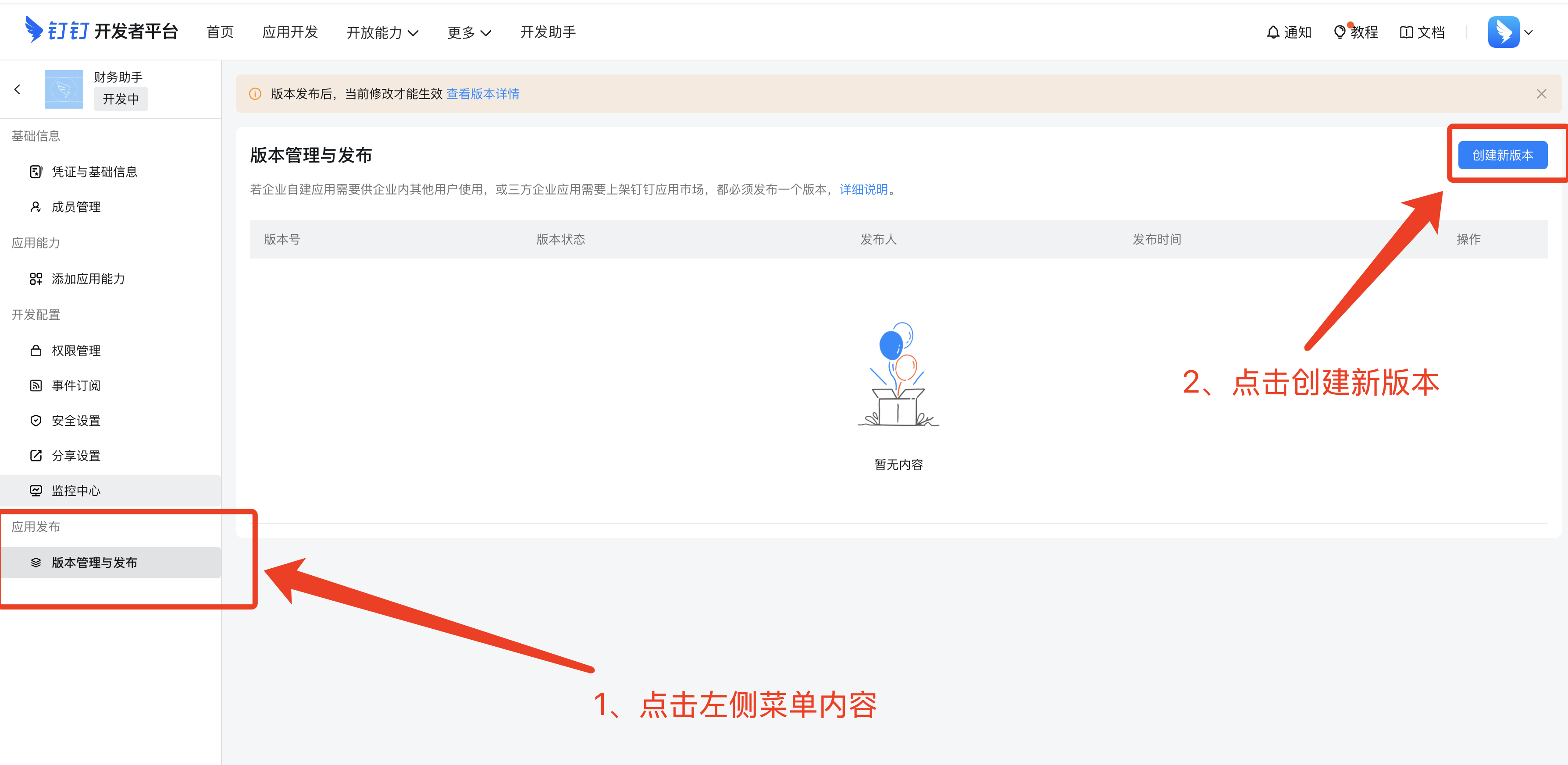5.11 在钉钉的版本管理与发布中,对应用进行发布