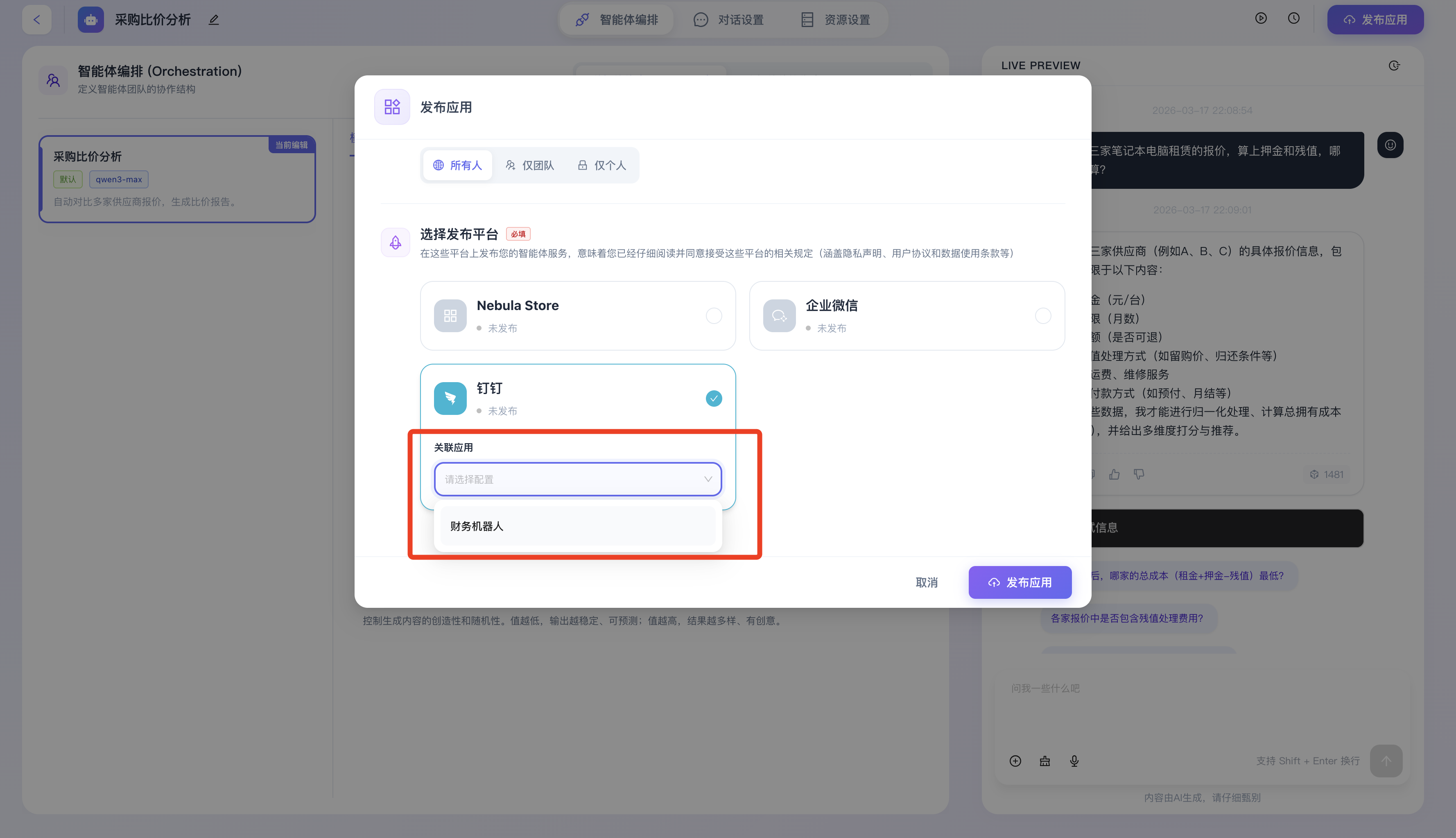 五、实操演示:如何将NebulaAI采购应用接入钉钉?